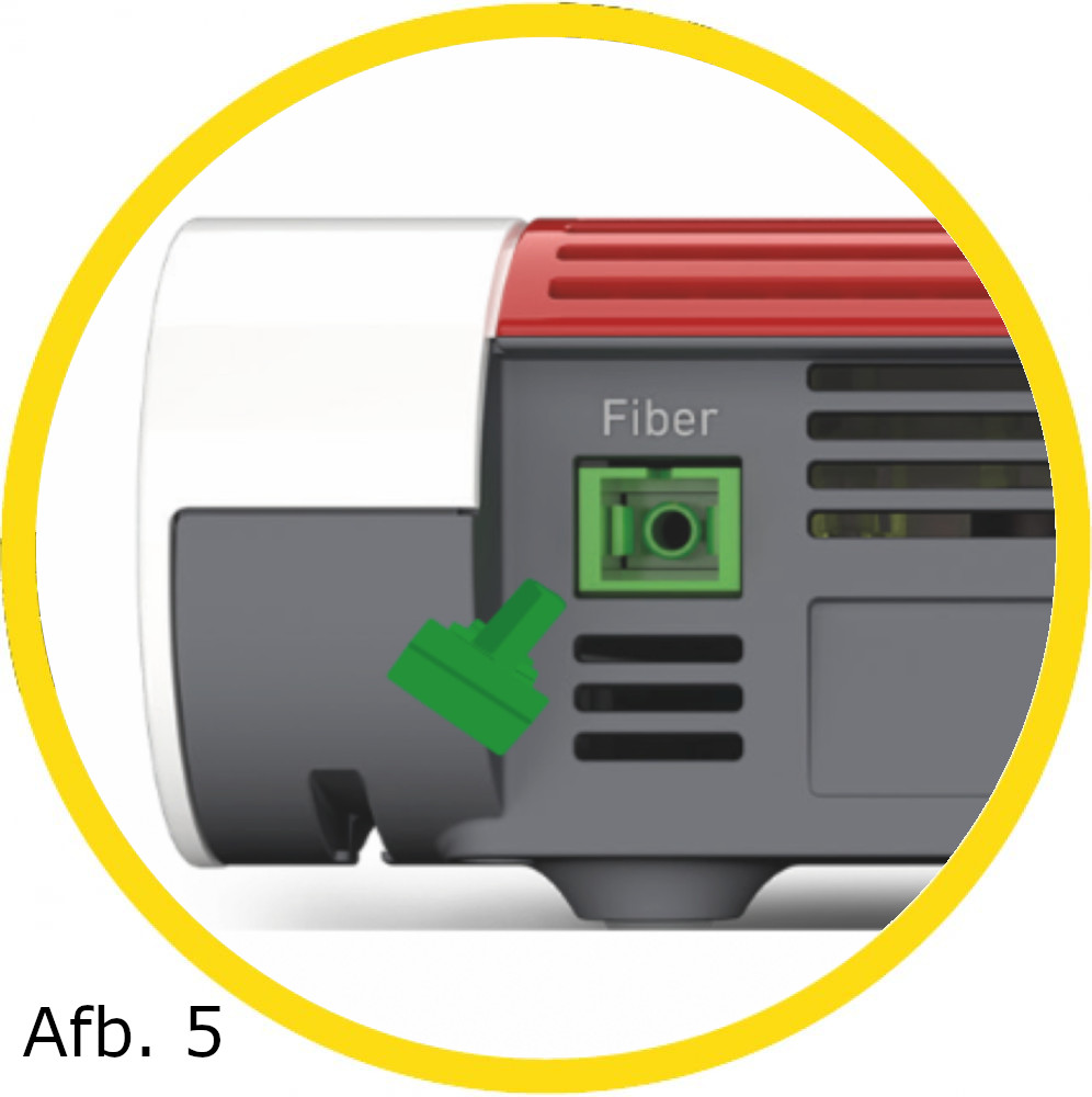 Verwijder het stofkapje van de ‘Fiber’ poort van de Fritz!Box (afb. 5)