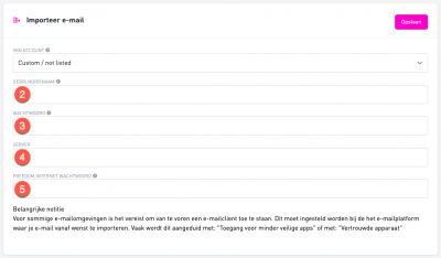 *Let op, belangrijke notitie voor Gmail-gebruikers: om e-mails van Gmail te kunnen importeren moet je mogelijk een app-specifiek wachtwoord aanmaken, klik hier voor meer informatie.