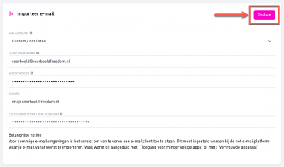 Onder het kopje ‘Importeer e-mail’ zie je een aantal keuze-/invulvelden, vul hier het volgende in: