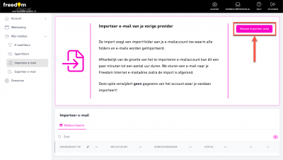 Let op, Het kan enige tijd duren voordat alle e-mail geïmporteerd is. Zodra de import klaar is krijg je hier een e-mail over op je @freedom.nl of op je @eigendomein.nl e-mailadres. De geïmporteerde e-mails staan in de map ‘import’.