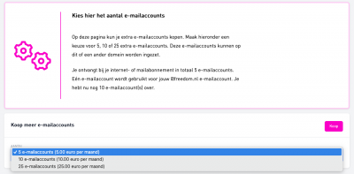 Kies in het keuzemenu hoeveel mailboxen je bij wilt kopen. Je kunt nu kiezen uit 3 opties, namelijk: