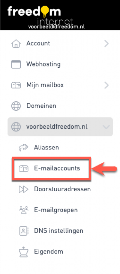 Je krijgt van Freedom bij je abonnement standaard 5 mailboxen cadeau. Een mailbox is in gebruik voor je @freedom.nl account, de overige 4 kun je voor bijvoorbeeld je eigen domein(en) gebruiken. Wil je bovenop die 5 mailboxen extra mailboxen kopen voor je eigen domein(en)? Dat kan! Volg onderstaande stappen.