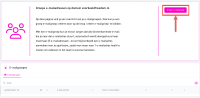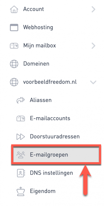 Klik onder de domeinnaam in het menu op de optie 'E-mailgroepen'