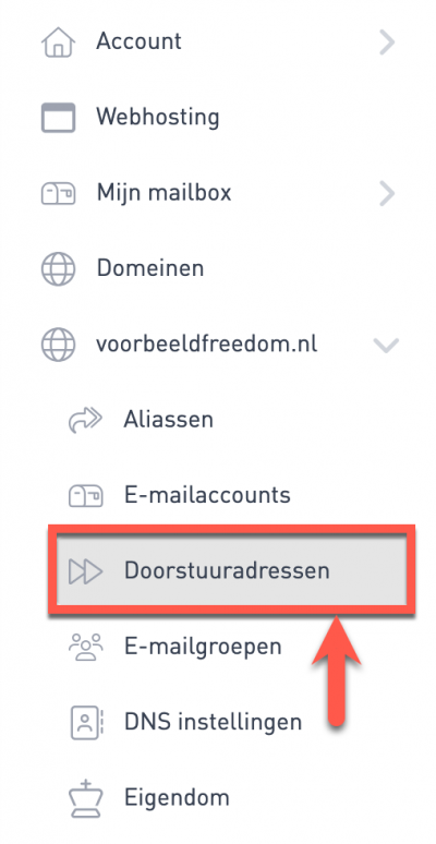 Klik onder de domeinnaam in het menu op de optie 'Doorstuuradressen'
